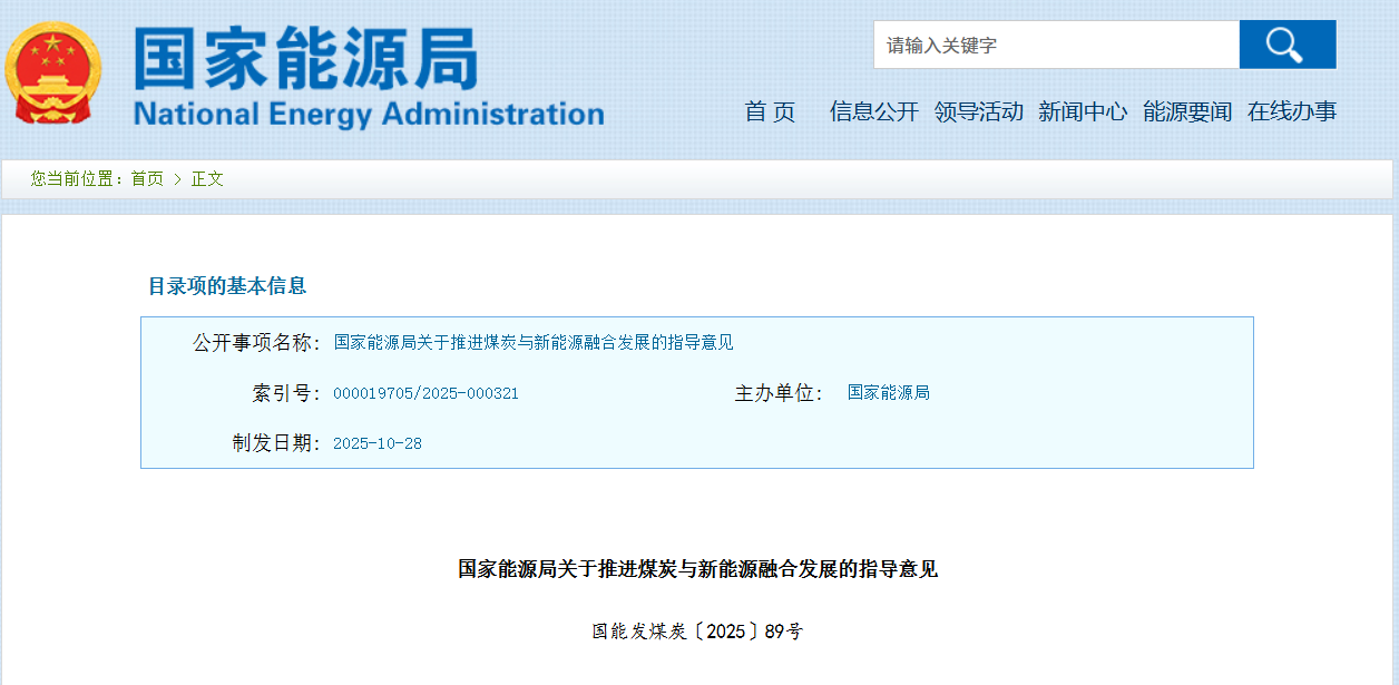國家能源局關于推進煤炭與新能源融合發(fā)展的指導意見