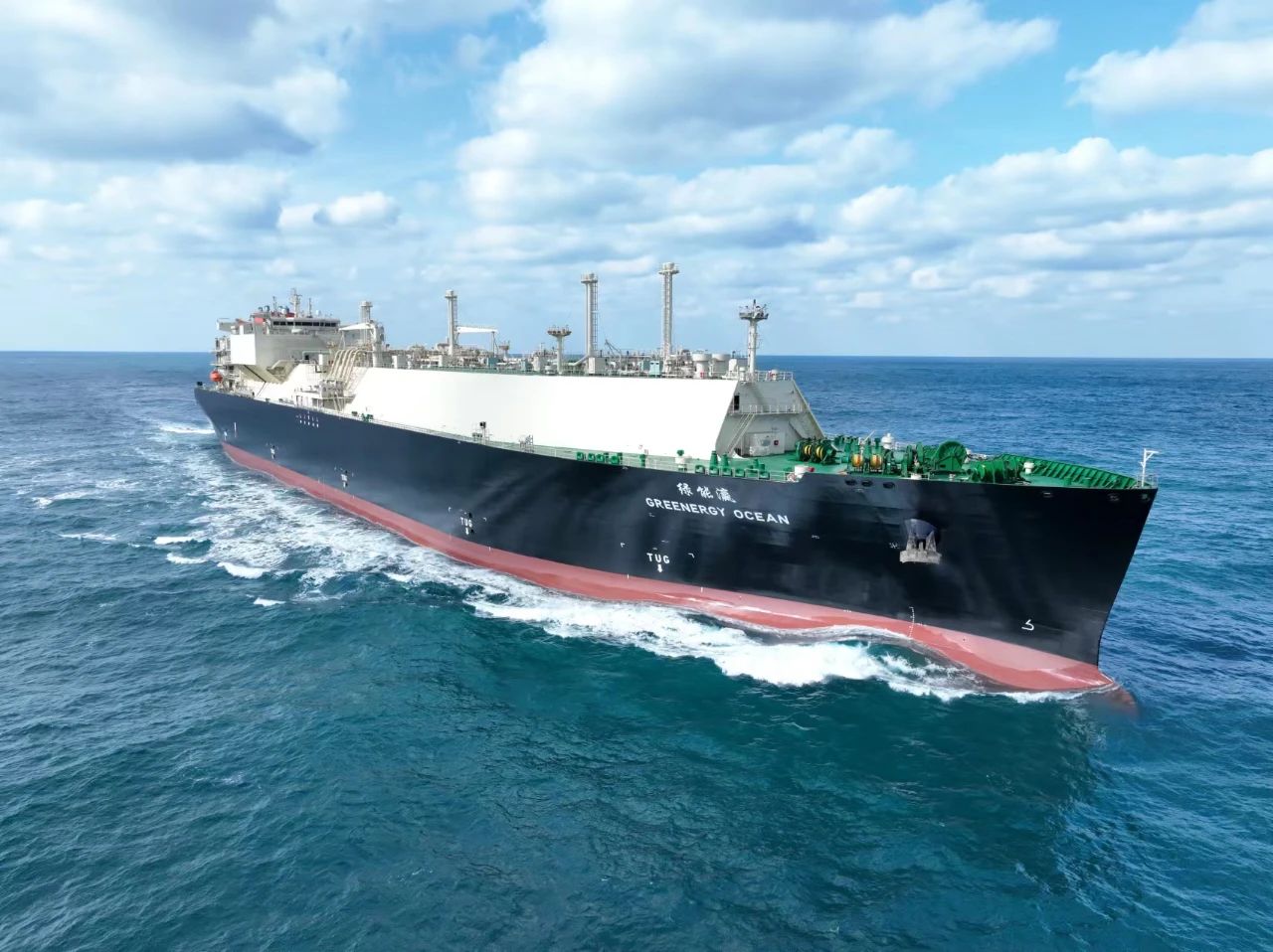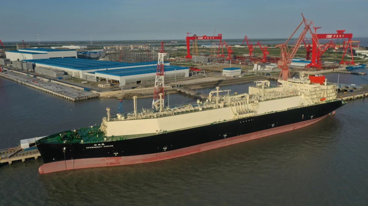 我國最大規(guī)模液化天然氣運(yùn)輸船建造項(xiàng)目首制船“綠能瀛”在上海滬東船廠進(jìn)行交付