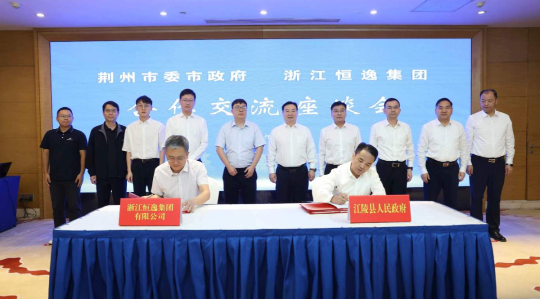 9月20日上午,恒逸集團(tuán)與荊州市江陵縣人民政府簽署年產(chǎn)100萬噸綠色循環(huán)新材料項目投資協(xié)議。荊州市委書記汪元程,市委副書記、市長李迎偉與恒逸石化董事長兼總裁邱奕博座談交流,并共同見證簽約。